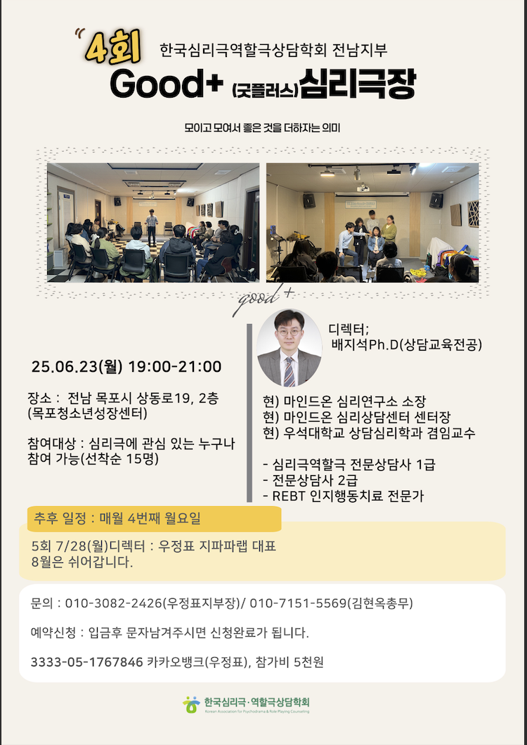 전남지부 제4회 25.06.28 Good+ (굿플러스)심리극장 계획 및 운영후기입니다
