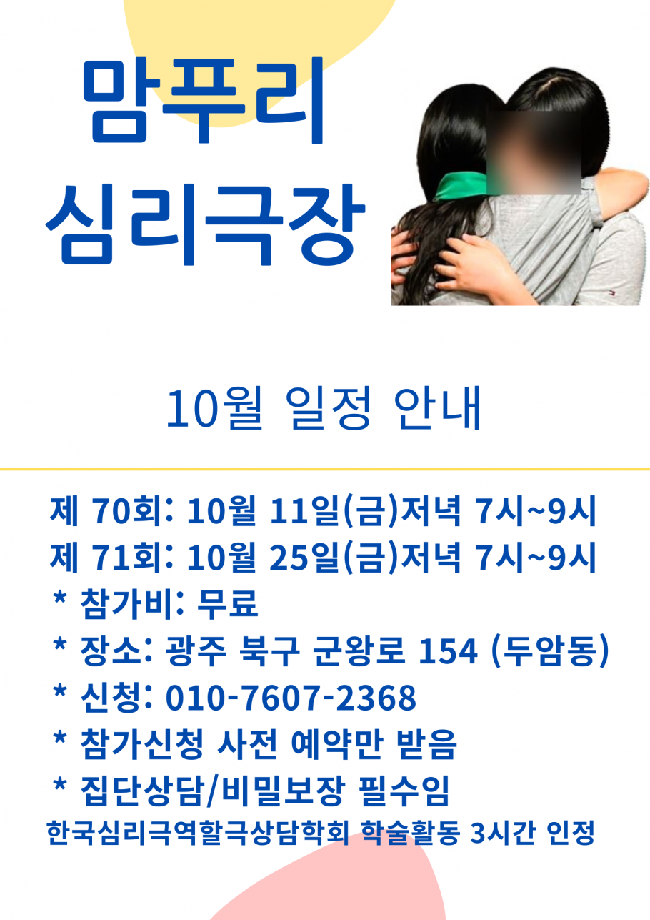 광주지부 광주 맘푸리심리극장 10월 안내