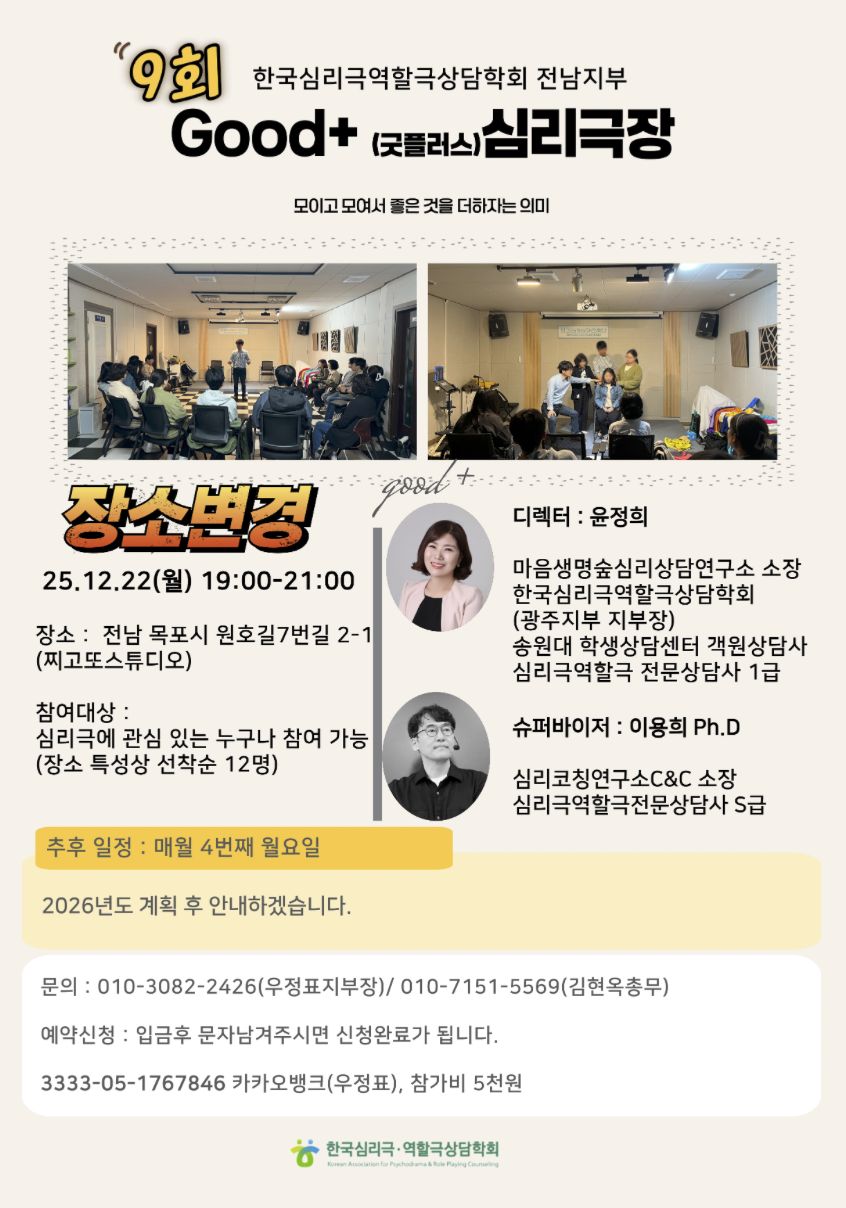 전남지부 제9회 25.12.22 Good+ (굿플러스)심리극장 계획 및 운영후기입니다
