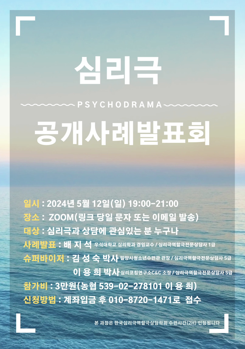 심리코칭연구소C&C에서 심리극 공개 사례발표회를 개최합니다.