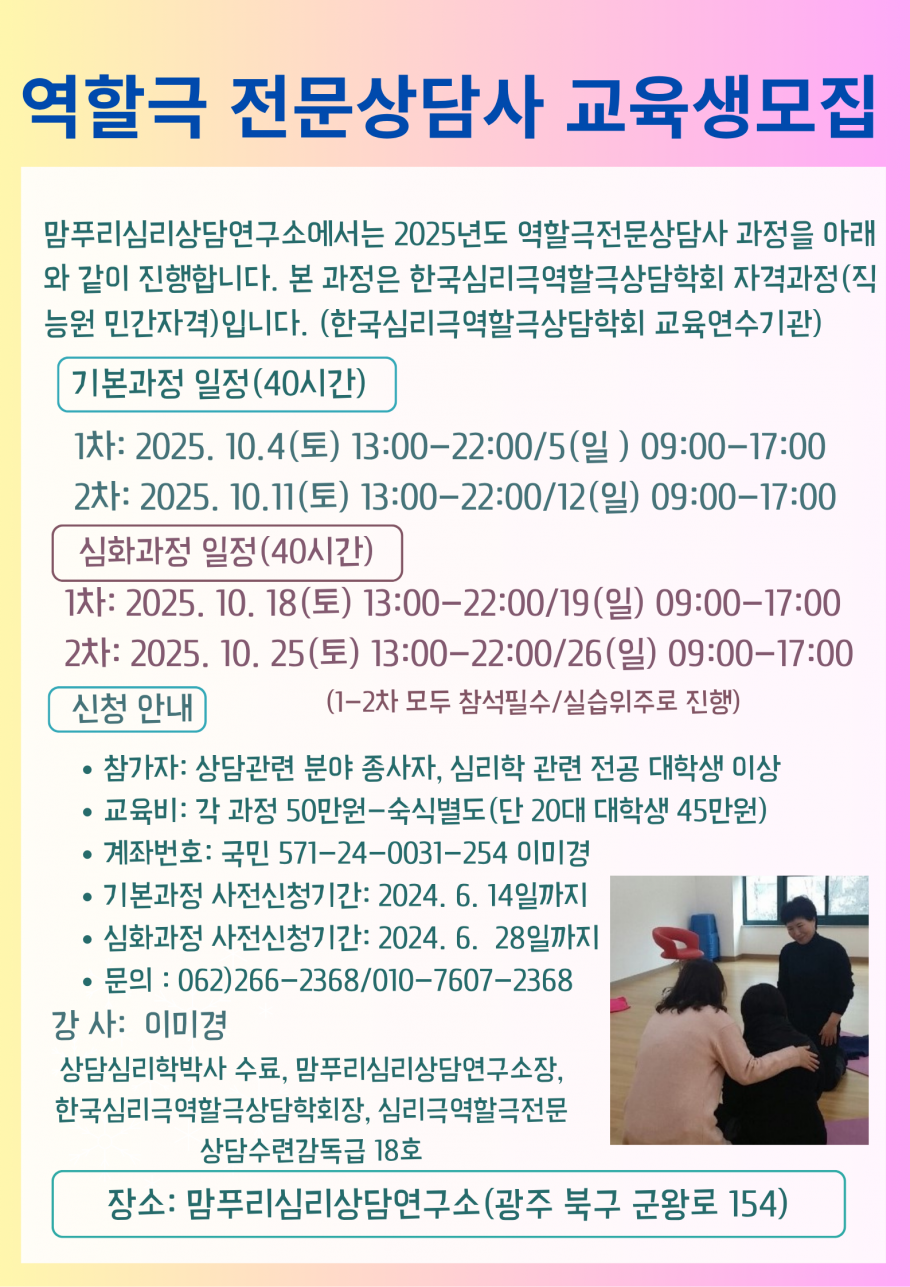 2025년 역할극전문상담사 자격증 과정