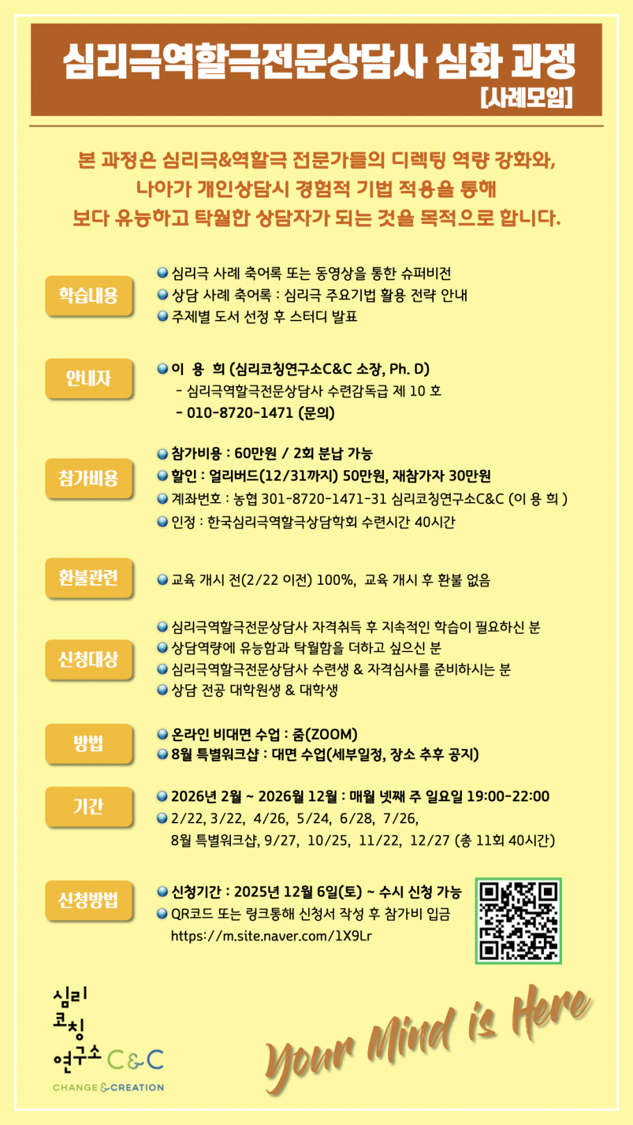 그동안 현장에서 쌓아온 상담 경험에 한층 단단한 기초와 디렉팅 역량을 더해,